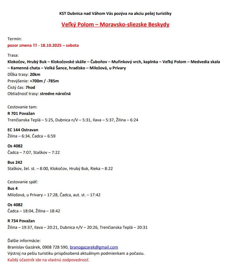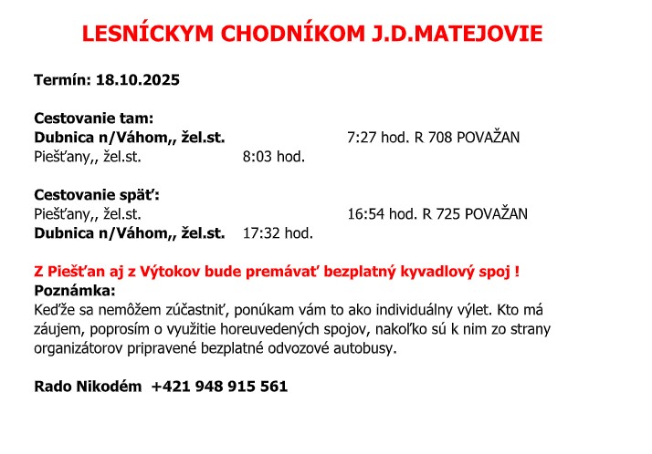 LESNÍCKYM CHODNÍKOM J.D.MATEJOVIE-propozície